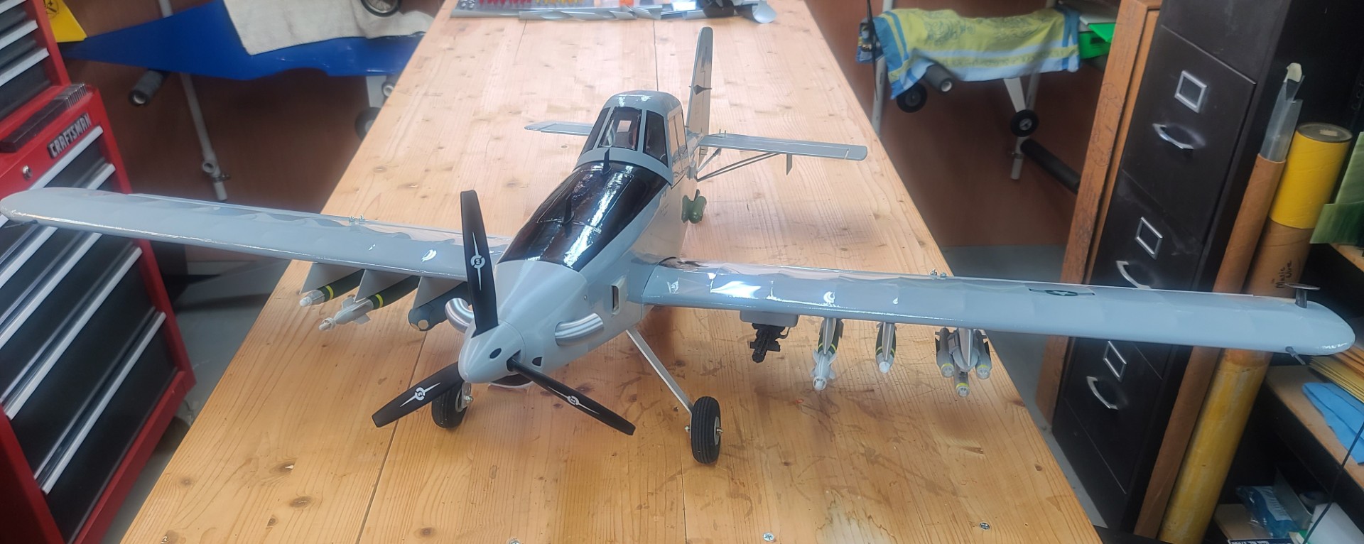 Having served 24 years in the Air Force, I tend to keep track of new USAF developments, especially when it comes to new aircraft. One that has caught my attention is the new OA-1K Skyraider II. For my Semi-Scale scratch build of the Skyraider II, my starting point was the Air Tractor AT-802. This scratch build is fully covered in my OA-1K “build description” which is available for viewing and download using a link on “My Balsa Models Builders Page.”