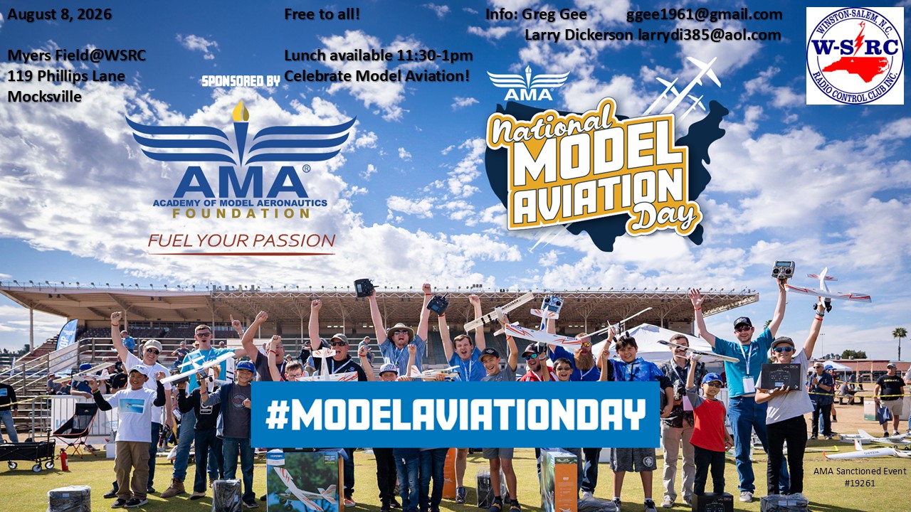 August 8 – National "Model Aviation Day" at WS-RC Flying Field