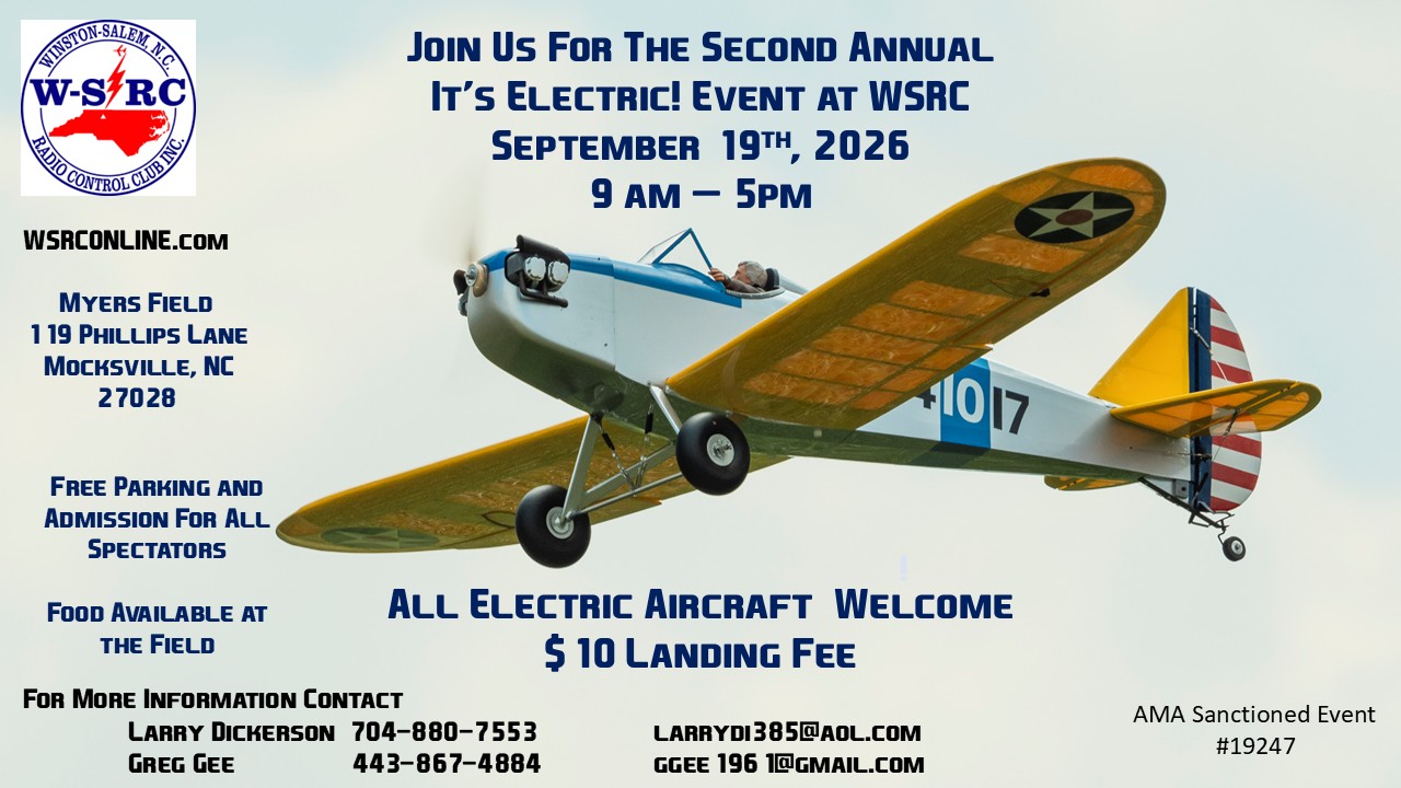 September 19 – "It's Electric" at WS-RC Flying Field