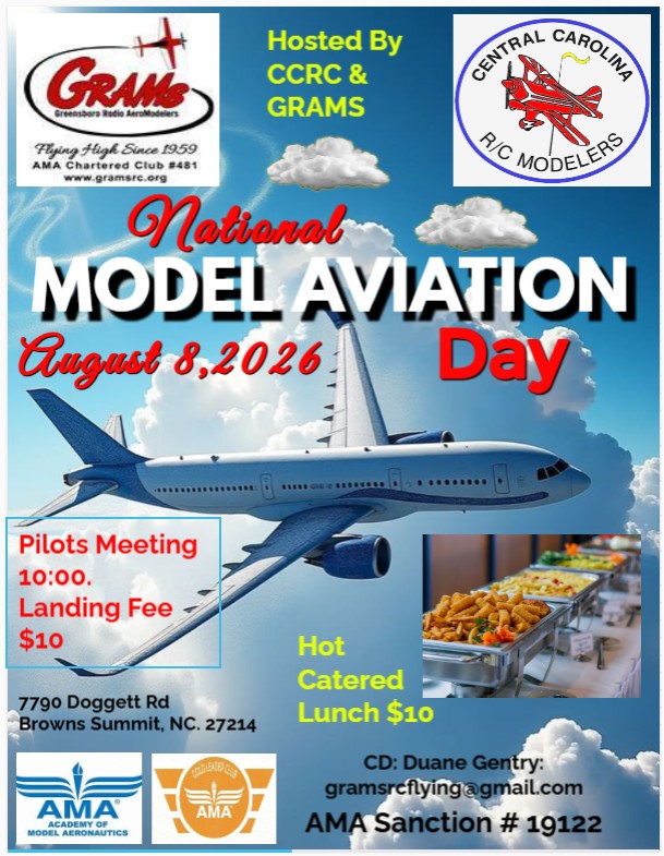 August 8 – 1st Annual National "Model Aviation Day" w/CCRCM at GRAMS Flying Field