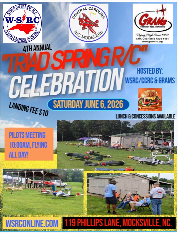 June 6 – Spring Triad Celebration w/GRAMS & CCRCM at WS-RC Flying Field